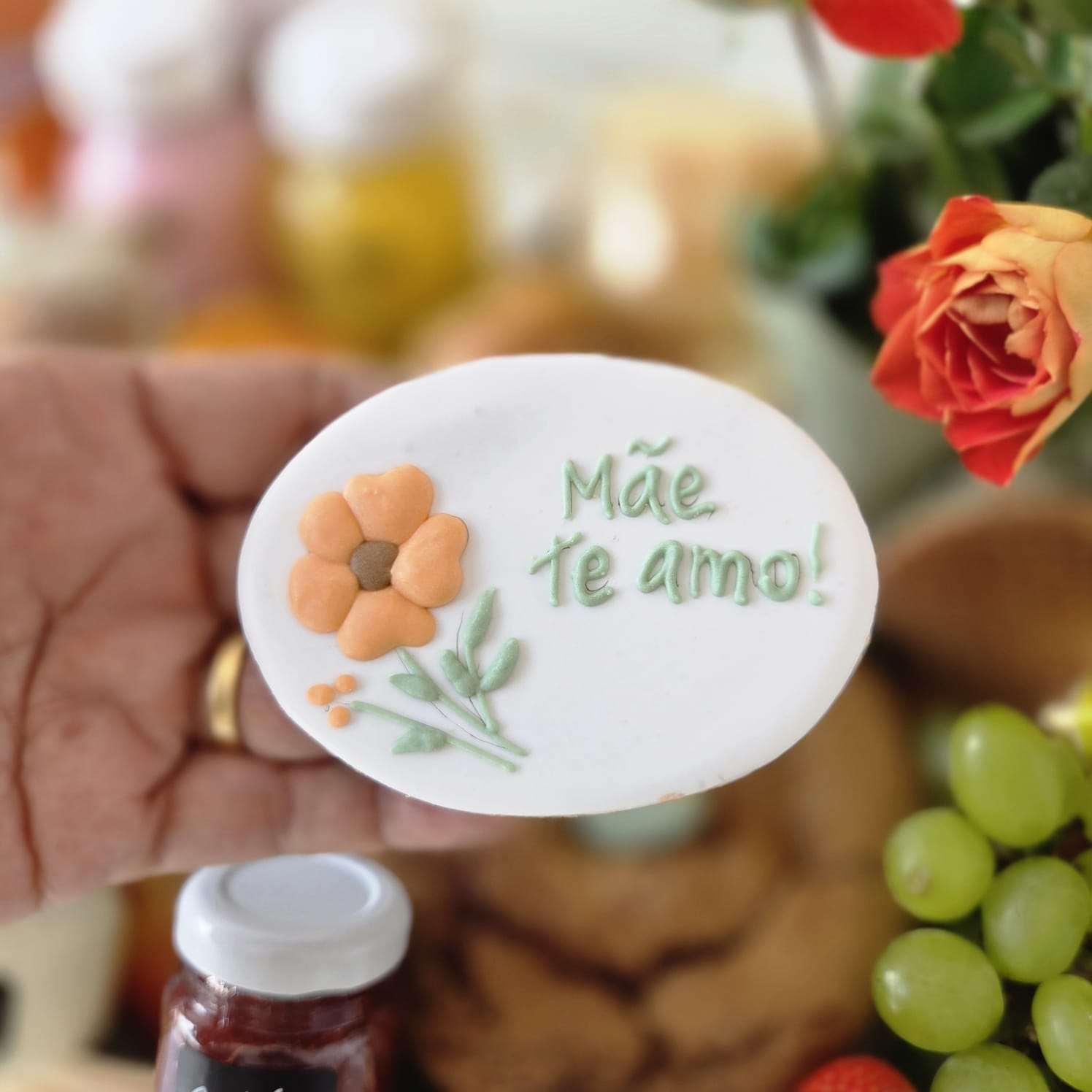 - Biscoito decorado “Mãe, te amo!”